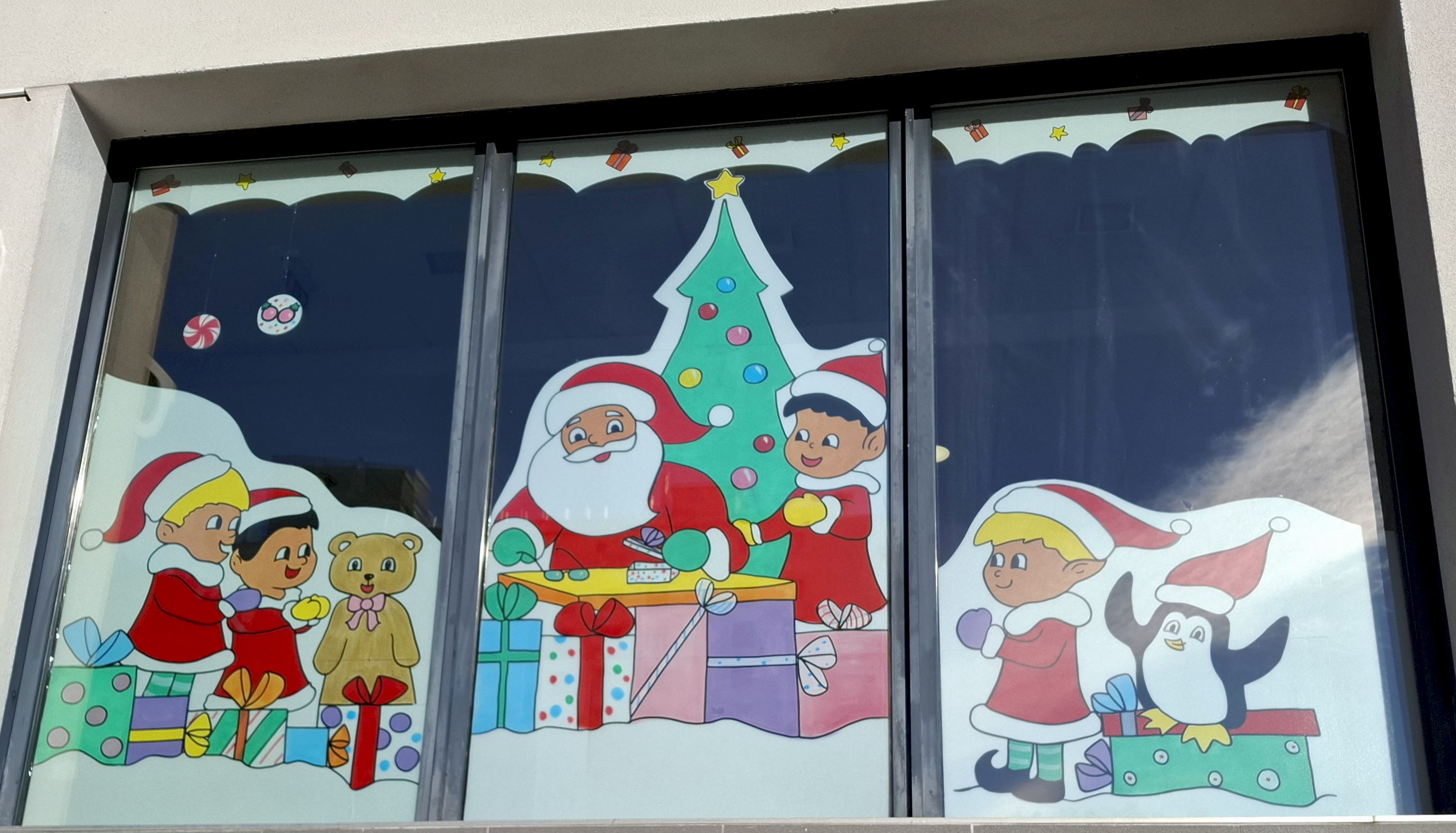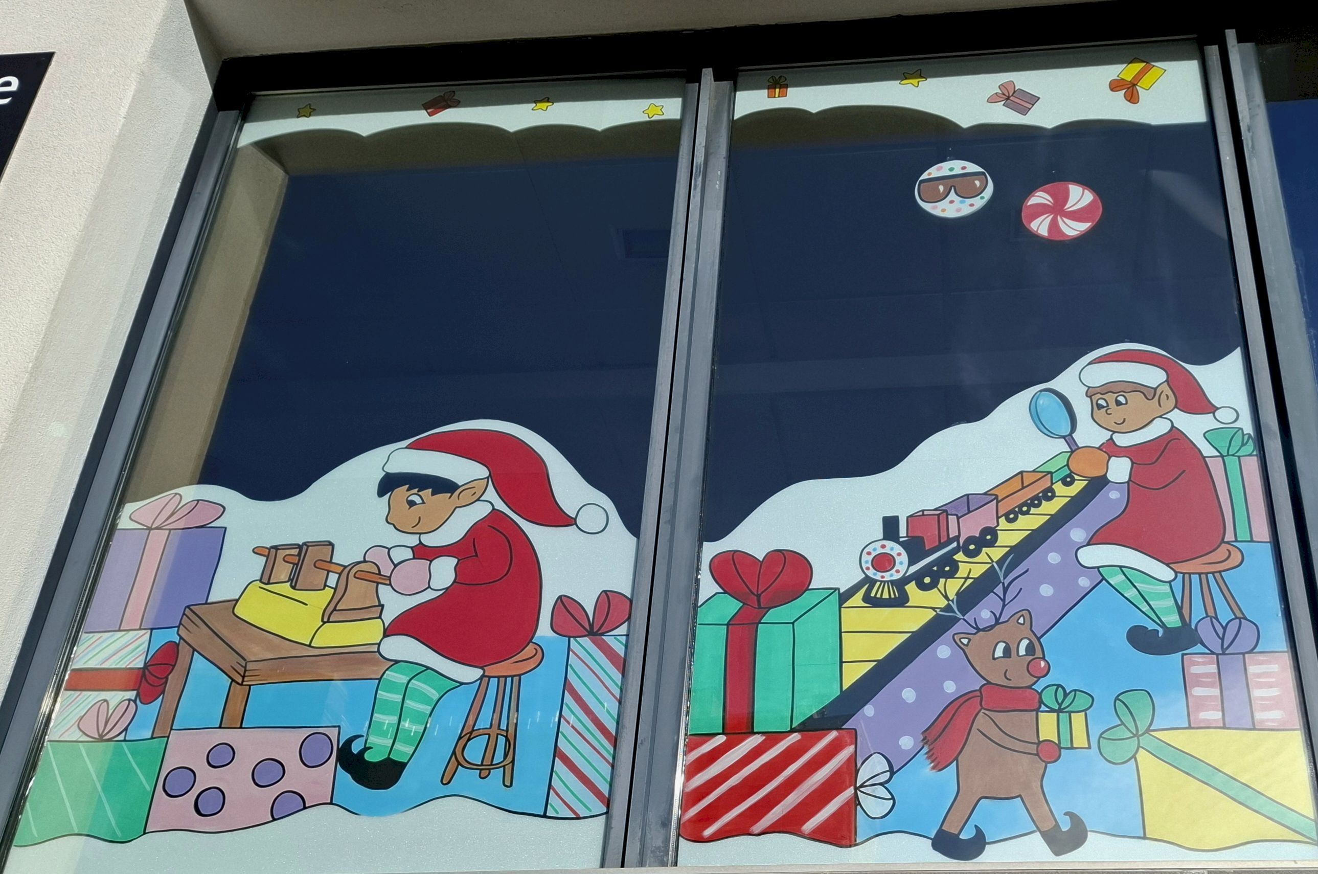 Peinture sur vitrine de fêtes : l'atelier du Père Noël et ses lutins