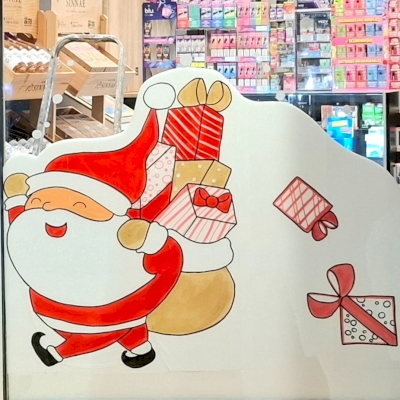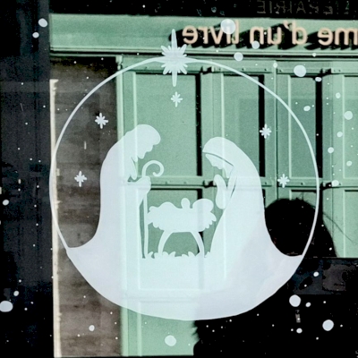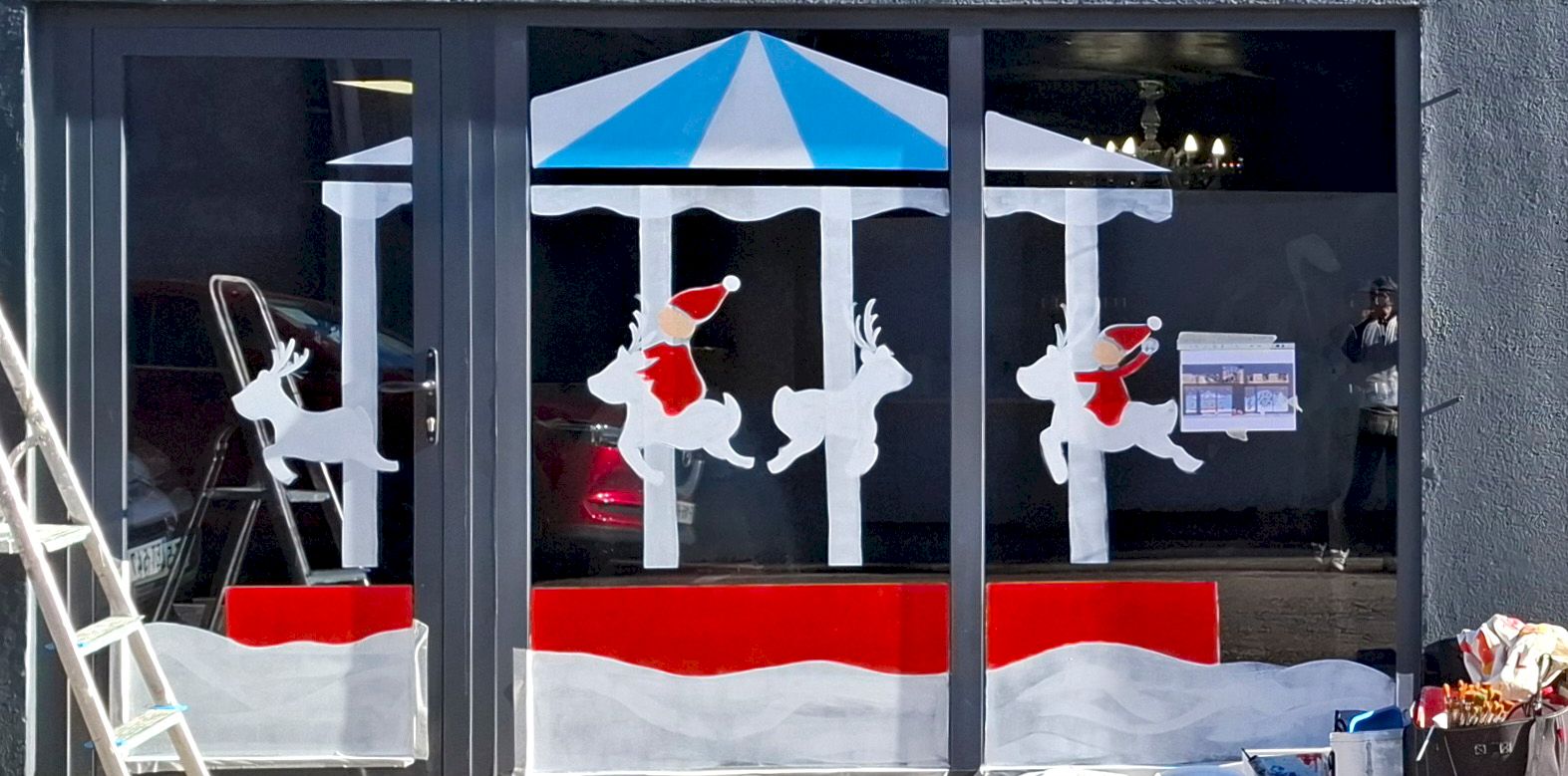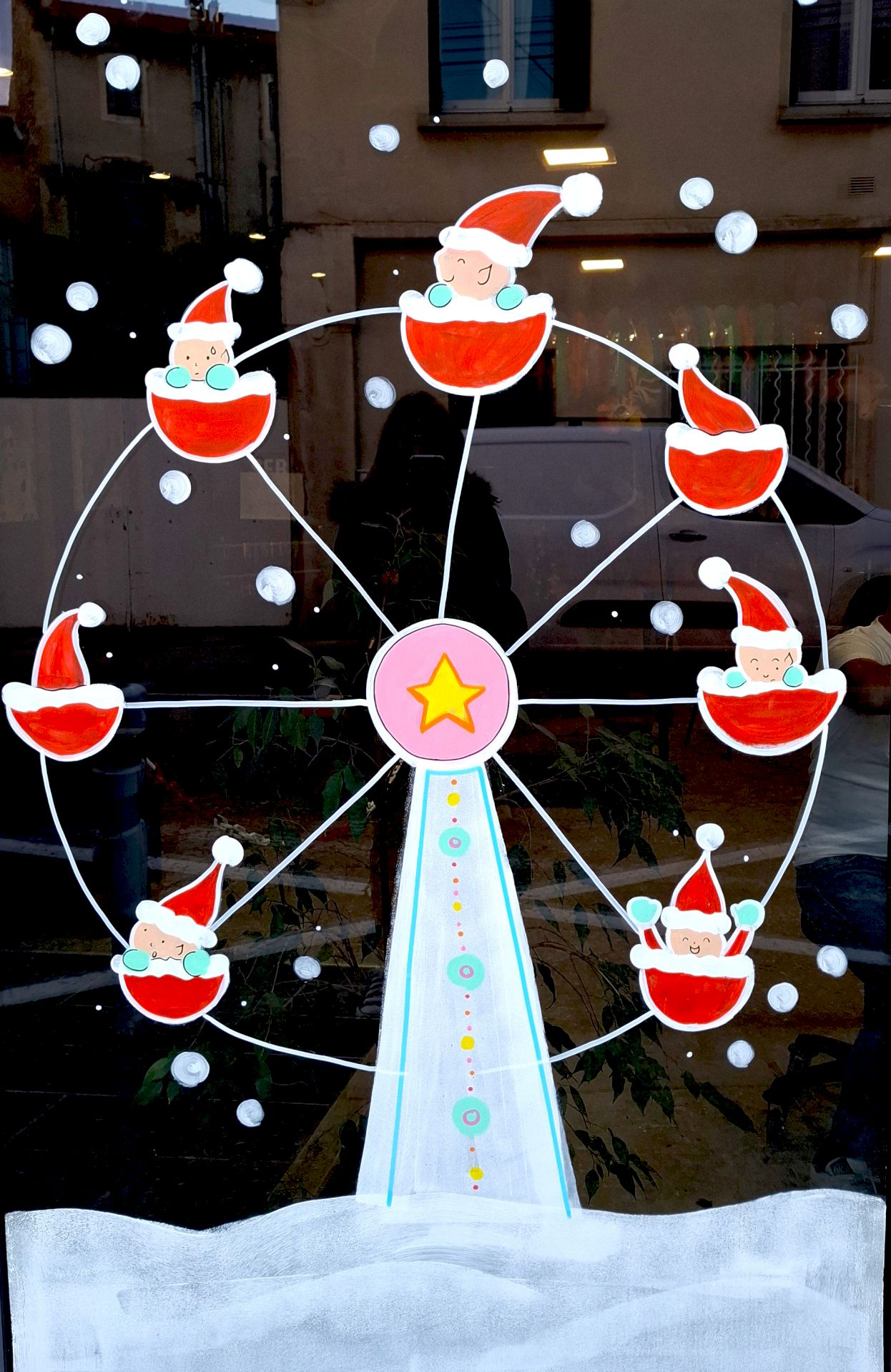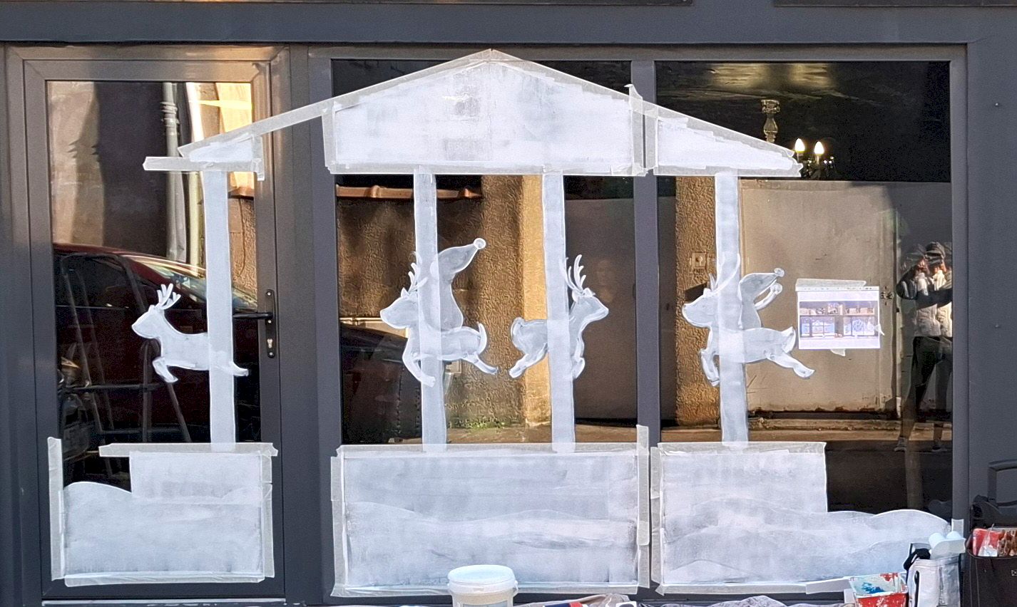 Fresque de Noël sur vitrine pour le salon Double H à Bagnols-sur-Cèze