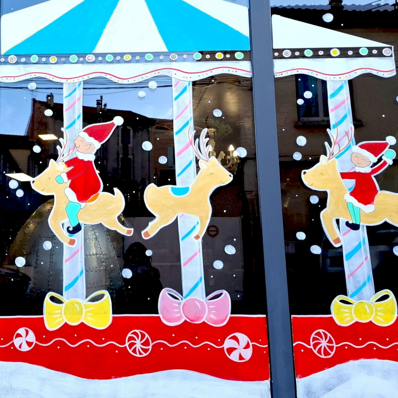 Que vous soyez commerçant, artisan ou responsable d’un établissement, vous pouvez transformer votre façade en véritable scène féerique. Je crée des peintures sur vitrines personnalisées, pensées pour raconter une histoire et attirer l’œil.