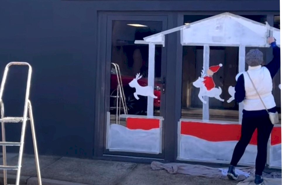 Cette décoration de vitrine de Noël a été pensée pour attirer le regard, captiver les passants et plonger le salon dans une atmosphère chaleureuse et festive.