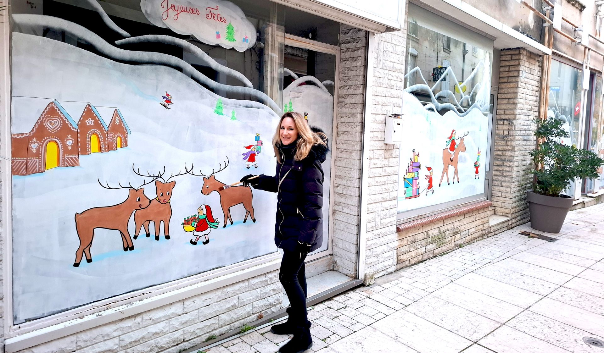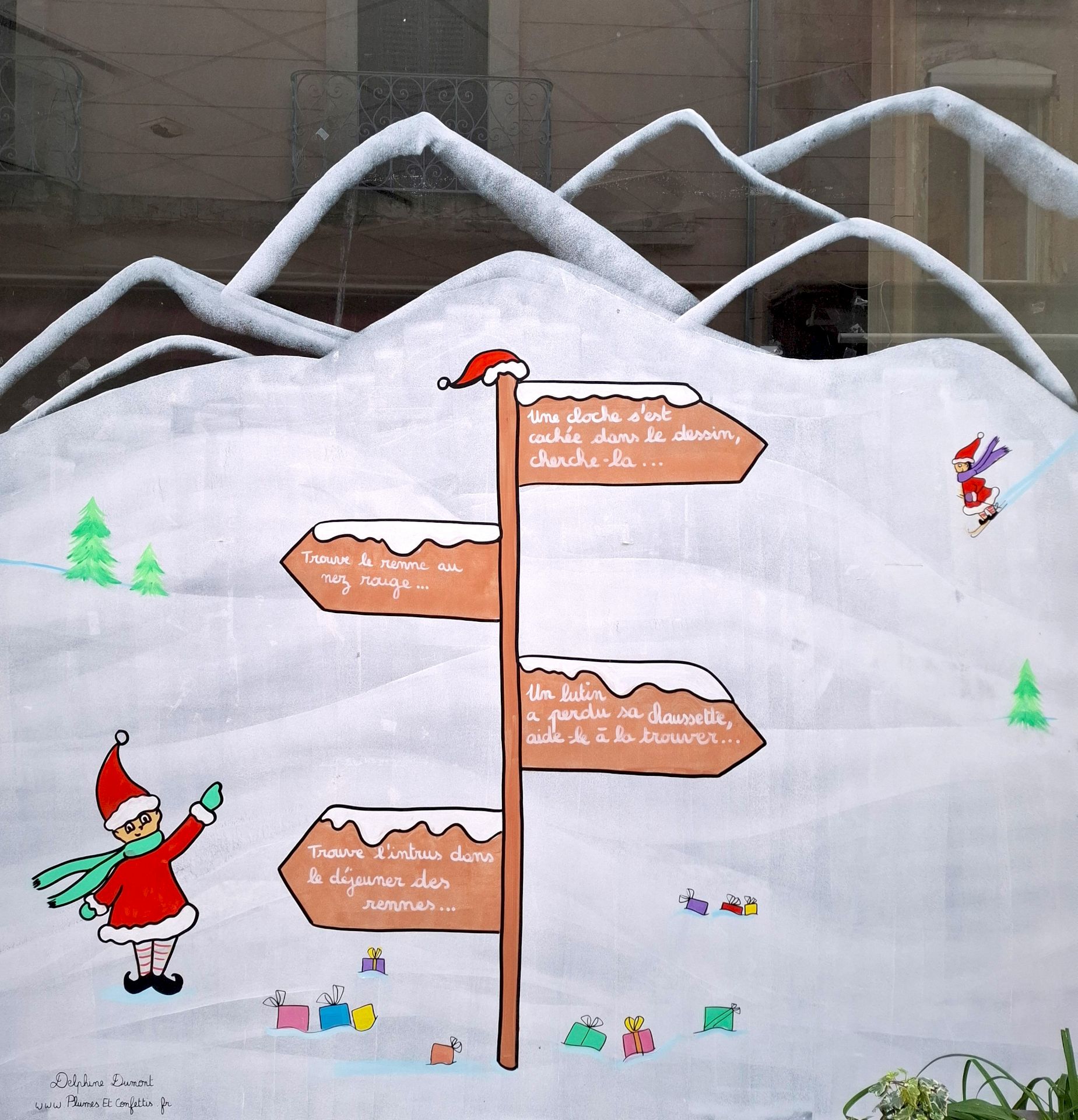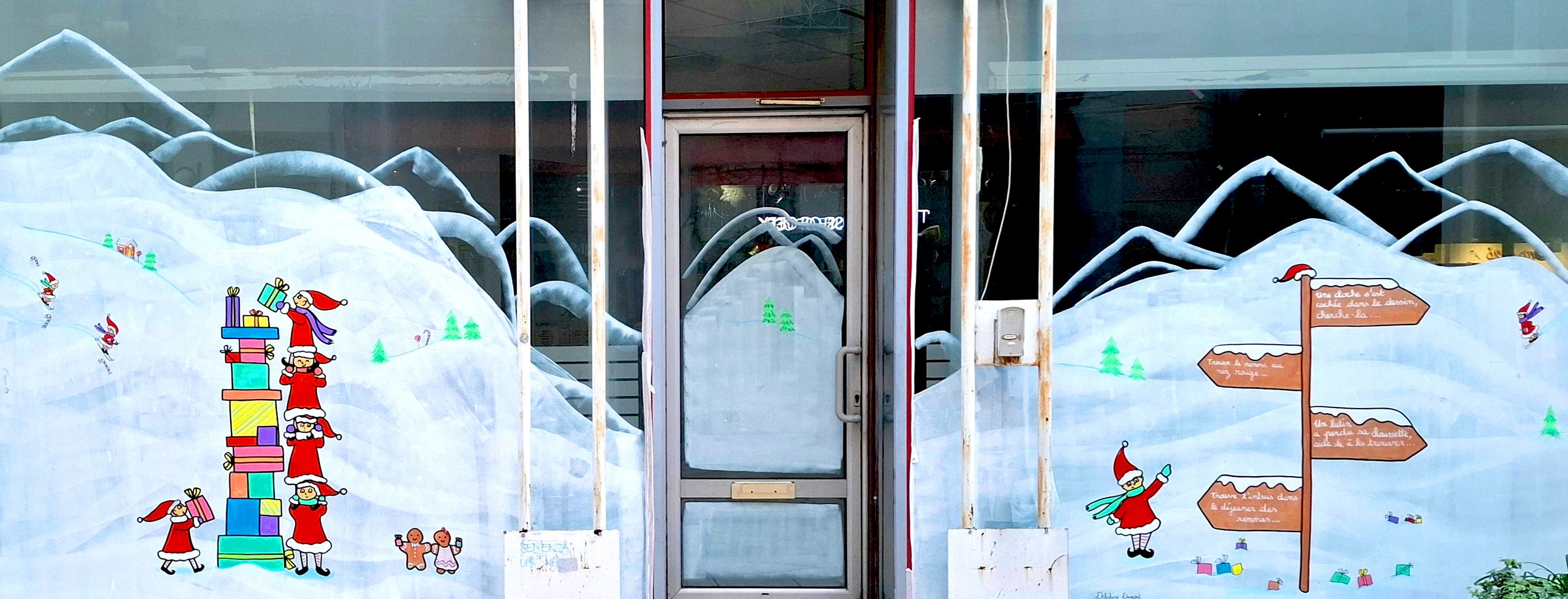 Peinture sur vitrine de Noël dans la rue de la République à Bagnols-sur-Cèze