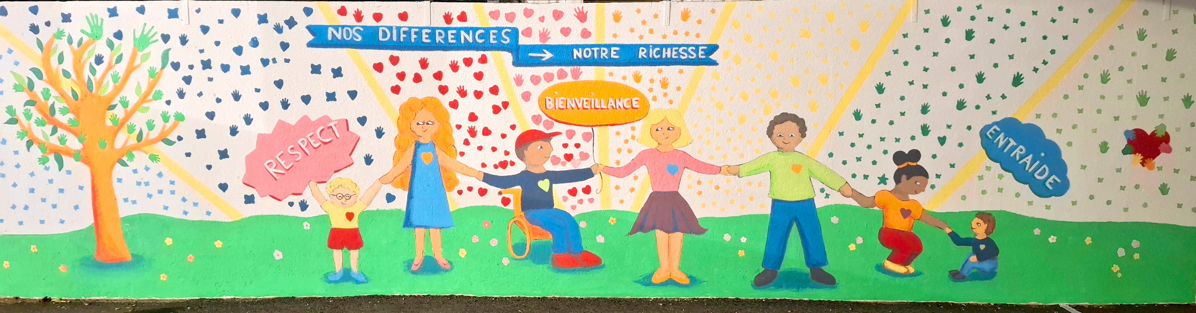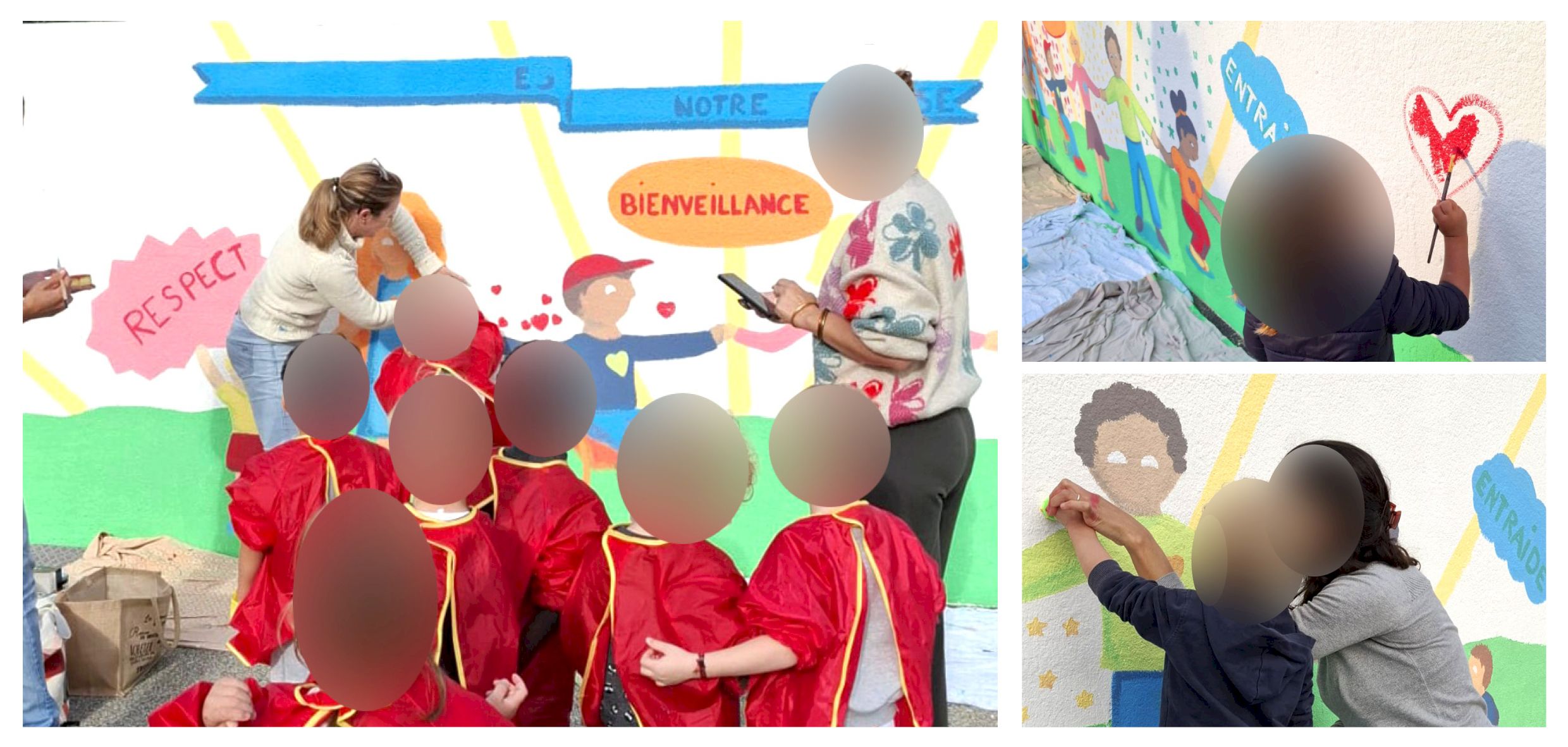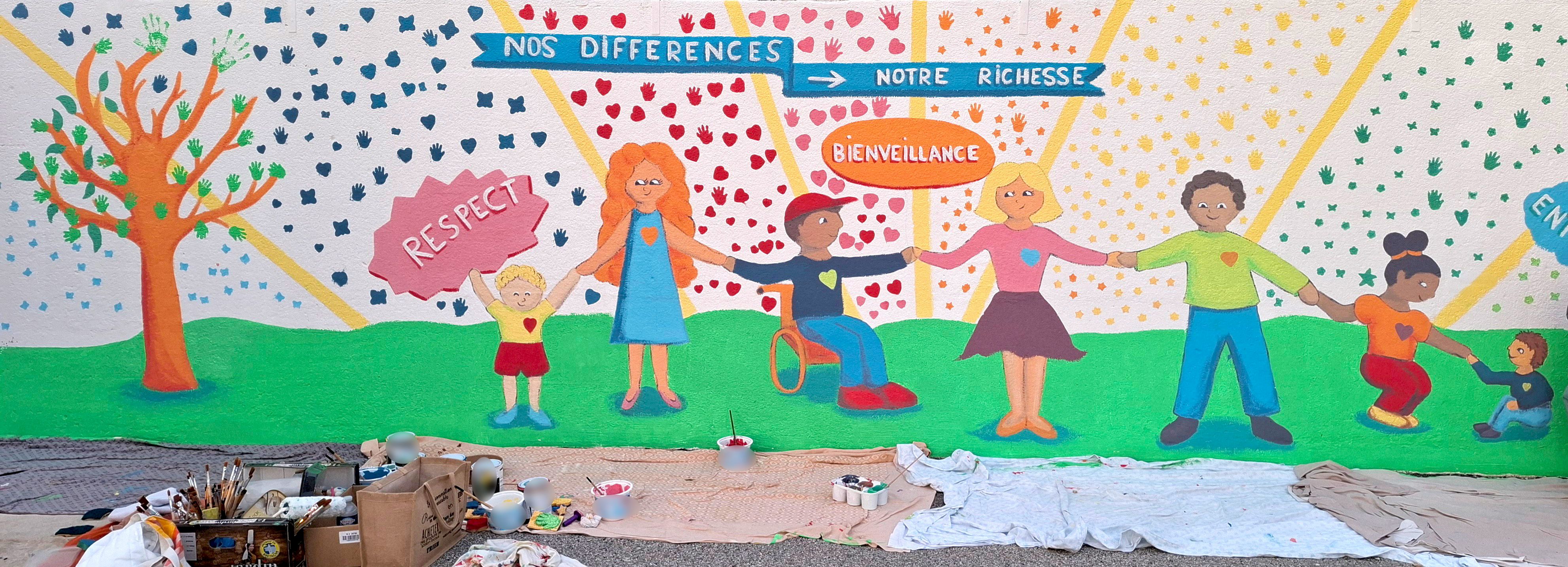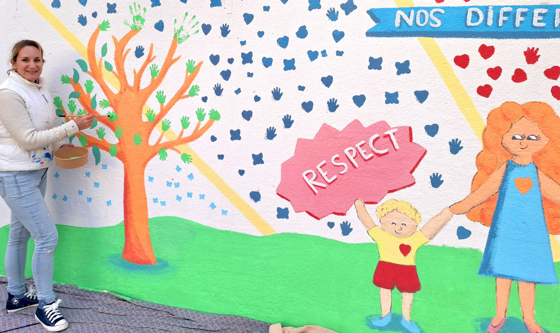 L’objectif était de créer une fresque murale porteuse de messages positifs autour de l’entraide, de la différence et du respect à l’occasion de la journée contre le harcèlement le 7 novembre.