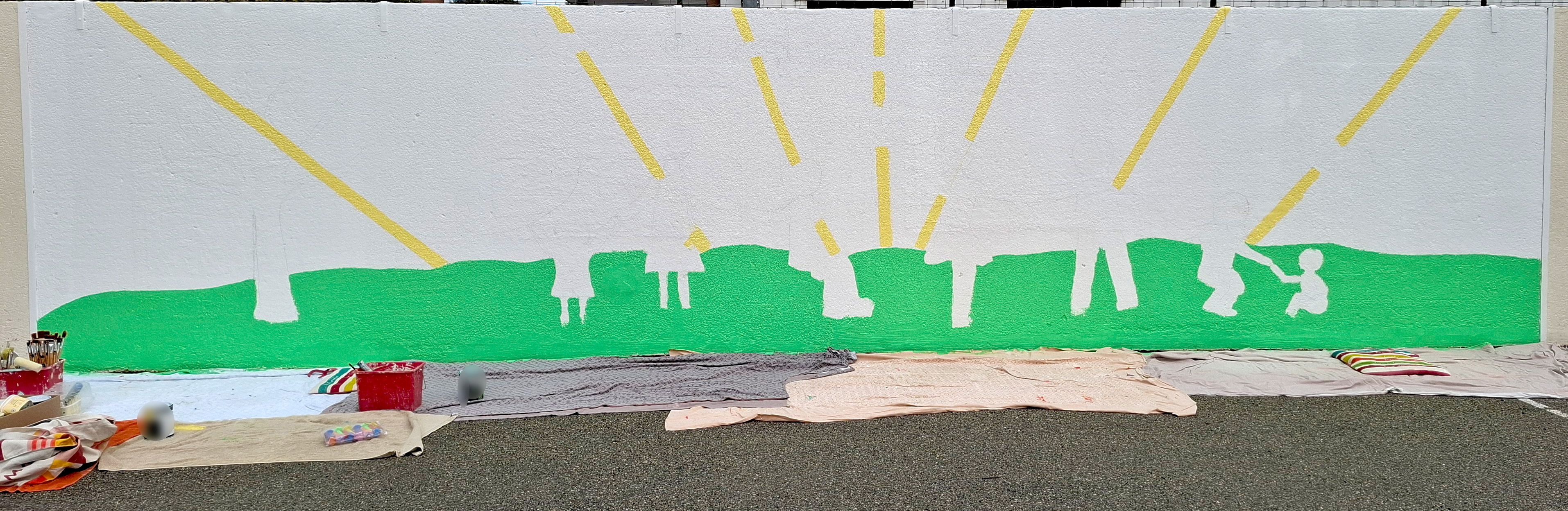 Avant toute réalisation artistique, une étape essentielle : la préparation du support. Le mur est soigneusement nettoyé et repeint par l'école afin d’assurer une bonne adhérence de la peinture ainsi qu'une meilleure durabilité de la fresque dans le temps.