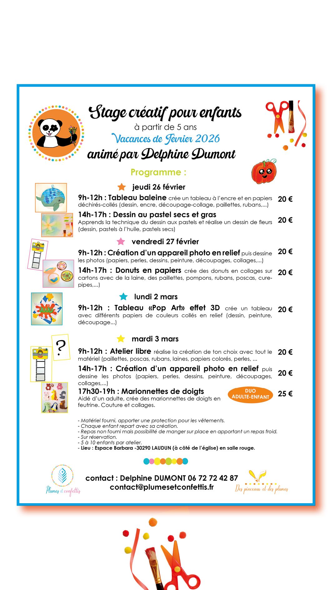 Sur réservation, pour participer et vous inscrire, merci de télécharger le bulletin d'incription et de me le renvoyer par mail à contact@plumesetconfettis.fr